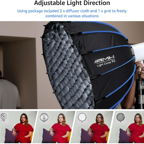 AMH One-Step Deep Parabolic Light Dome Softbox 90cm with Grid